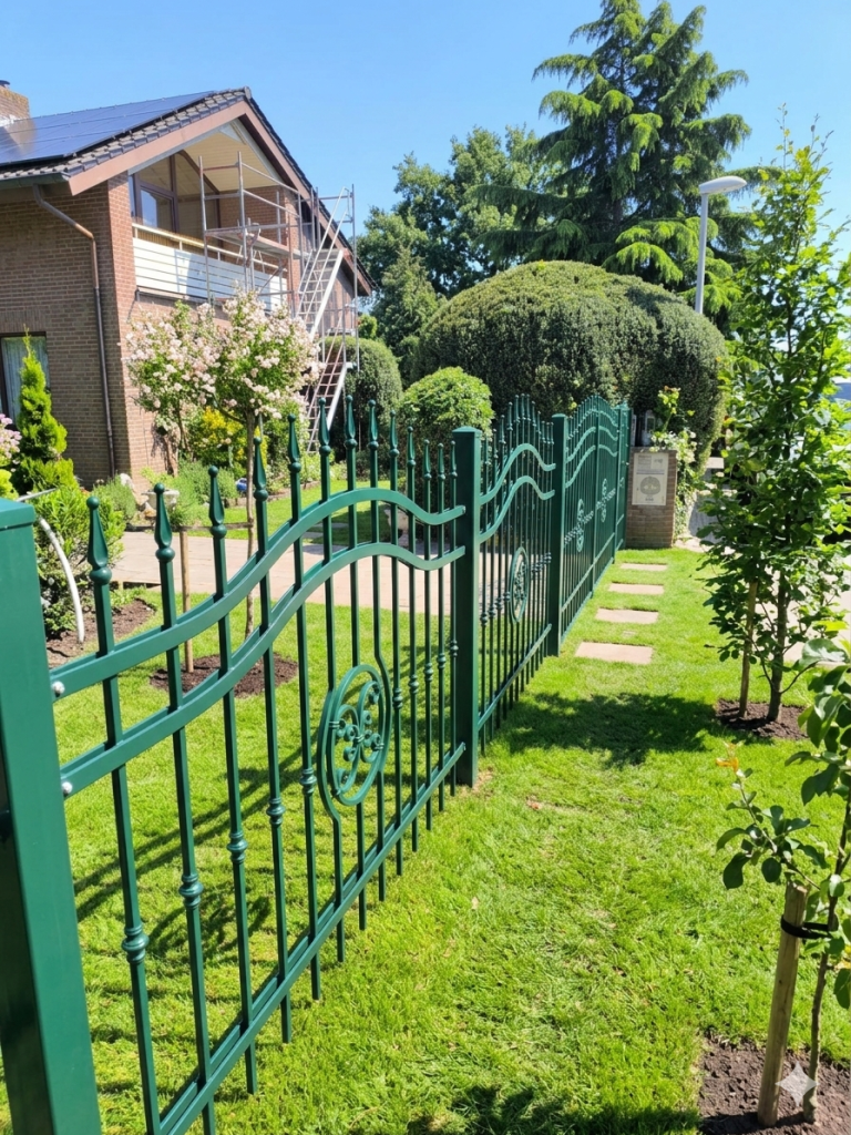 - Ein Schmiedeeisenzaun zeichnet sich durch seine hochwertige Verarbeitung und Langlebigkeit aus. Die edlen Materialien und die kunstvolle Schmiedetechnik verleihen jedem Grundstück eine besondere Note. Neben der ästhetischen Anziehungskraft bietet ein Schmiedeeisenzaun auch hervorragenden Schutz und Stabilität. Somit ist er nicht nur ein Blickfang, sondern auch eine rentable Investition in die Sicherheit und den Wert Ihres Eigentums.